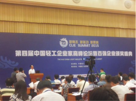 612日,由中國輕工業聯合會主辦的“第四屆中國輕工企業家高峰論壇暨輕工百強企業頒獎盛典”在北京京西賓館舉行。本屆論壇以“新思路、新驅動、新常態”為主題,來自政府部門、協會、媒體、企業及各地方輕工業組織共500余人參加了會議,新浪網等網絡媒體進行了全程報道。